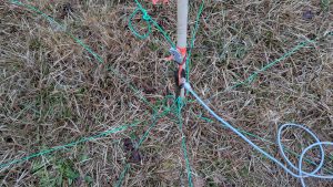 Good results with the new vertical make me suspicious of the shunt fed tower. It is matched by a 12-gauge wire (2mm) and matched by capacitors.  Rather flimsy construction since the vertical wire is supported only on top and at the bottom.