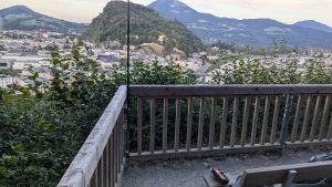 One of the best sites in Austria is picturesque Salzburg. Their cathedral looks like extension of a palace, because it is. At one time it was residence of a prince-bishop who needed lots of space for his semi-official wife and 15 children. Cliffs over the art museum with a view towards the castle fit ham radio just fine.