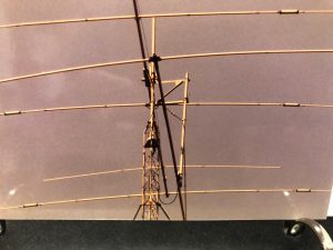 The mast consists of 2.4m 2-inch AL mast telescoping within the 2.5 inch mast that hold GXP 17-4. The TW antenna can be hoisted in pieces and reassembled on top, but this is not easy and can bend the masts. The antenna can be hoisted up complete if GXP 17-4 is temporarily twisted although the range of twisting is limited by horizontal guys of 17-4. Even if the TW beam is hoisted up, pushing the 15kg antenna up the telescoping mast would not be easy.