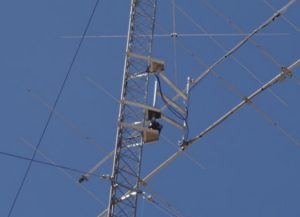 The antenna can easily be side mounted over the second guy (23m or 75’)  wityh swing arm mount allowing up to 300 degrees rotation – ask K4IDC for a design.